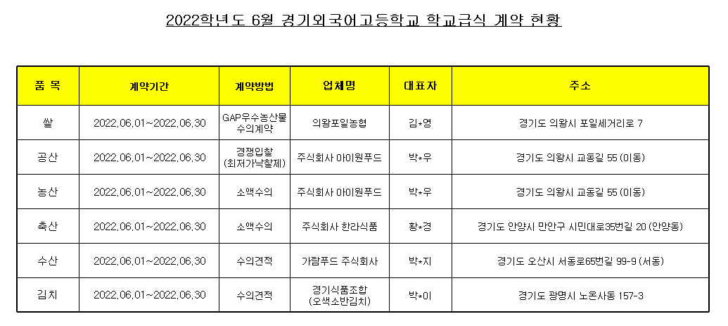 22³â 6¿ù Çб³±Þ½Ä ½ÄÀç·á ³³Ç°¾÷ü °è¾àÇöȲÀ» ¾Æ·¡¿Í °°ÀÌ °ø°³ÇÕ´Ï´Ù.