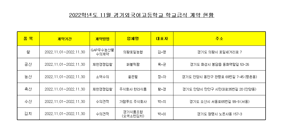 22³â 11¿ù Çб³±Þ½Ä ½ÄÀç·á ³³Ç°¾÷ü °è¾àÇöȲÀ» ¾Æ·¡¿Í °°ÀÌ °ø°³ÇÕ´Ï´Ù.