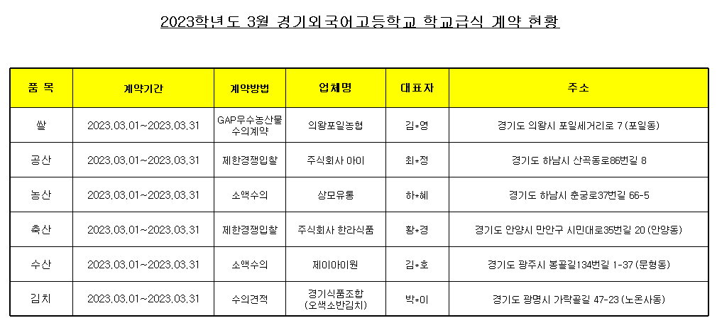 23³â 3¿ù Çб³±Þ½Ä ½ÄÀç·á ³³Ç°¾÷ü °è¾àÇöȲÀ» ¾Æ·¡¿Í °°ÀÌ °ø°³ÇÕ´Ï´Ù.