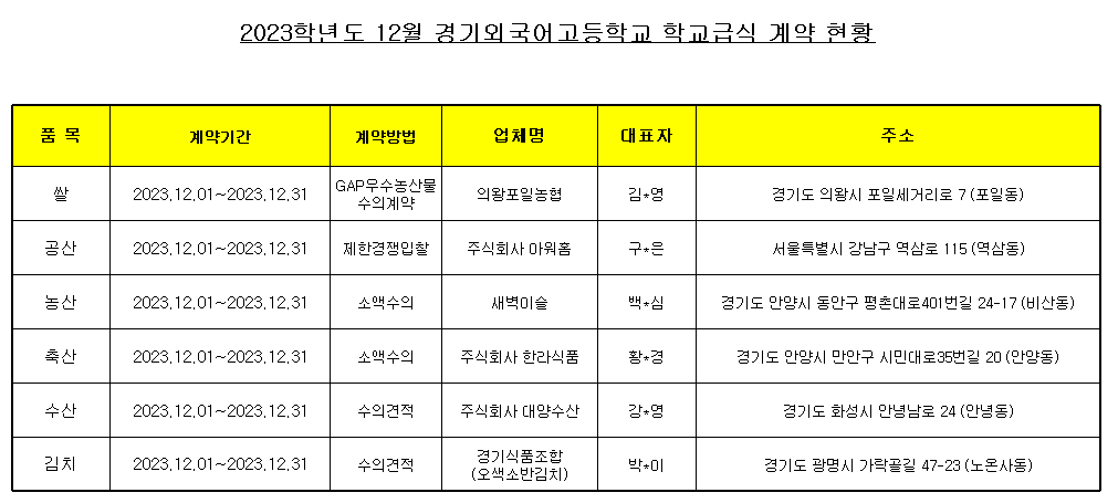 2023³â 12¿ù Çб³±Þ½Ä ½ÄÀç·á ³³Ç°¾÷ü °è¾àÇöȲÀ» ¾Æ·¡¿Í °°ÀÌ °ø°³ÇÕ´Ï´Ù.