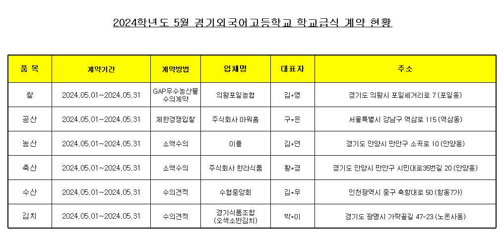 2024³â 5¿ù Çб³±Þ½Ä ½ÄÀç·á ³³Ç°¾÷ü °è¾àÇöȲÀ» ¾Æ·¡¿Í °°ÀÌ °ø°³ÇÕ´Ï´Ù.