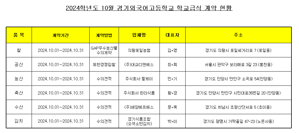 2024³â 10¿ù Çб³±Þ½Ä ½ÄÀç·á ³³Ç°¾÷ü °è¾àÇöȲÀ» ¾Æ·¡¿Í °°ÀÌ °ø°³ÇÕ´Ï´Ù.