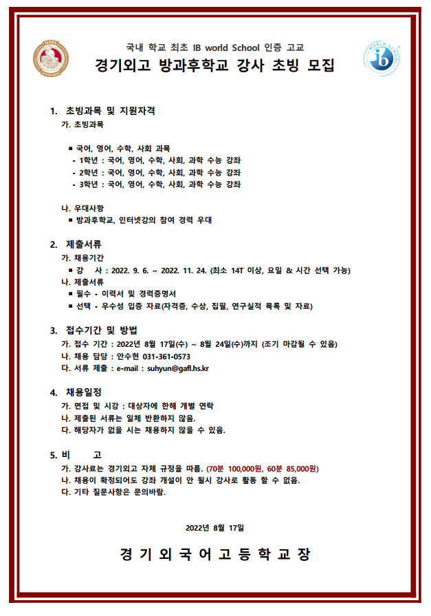 ASG Fall ¹æ°úÈÄ Çб³ ¿ÜºÎ °­»ç °ø°í
