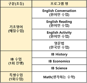 µµÀÔÇÏ¿© ÀÌ¹Ì 10³â ³Ñ°Ô IB ±¹Á¦ Ç¥ÁØ ±³À°°úÁ¤À» ¿î¿µÁßÀÎ Çб³ÀÔ´Ï´Ù. ÀÌ ±â¹ÝÀ» ¹ÙÅÁÀ¸·Î ¿µ¾î ÇнÀ »Ó