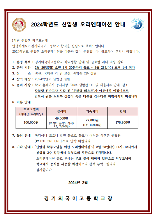 2024Çг⵵ ½ÅÀÔ»ý ¿À¸®¿£Å×ÀÌ¼Ç ¾È³» °¡Á¤Åë½Å¹®